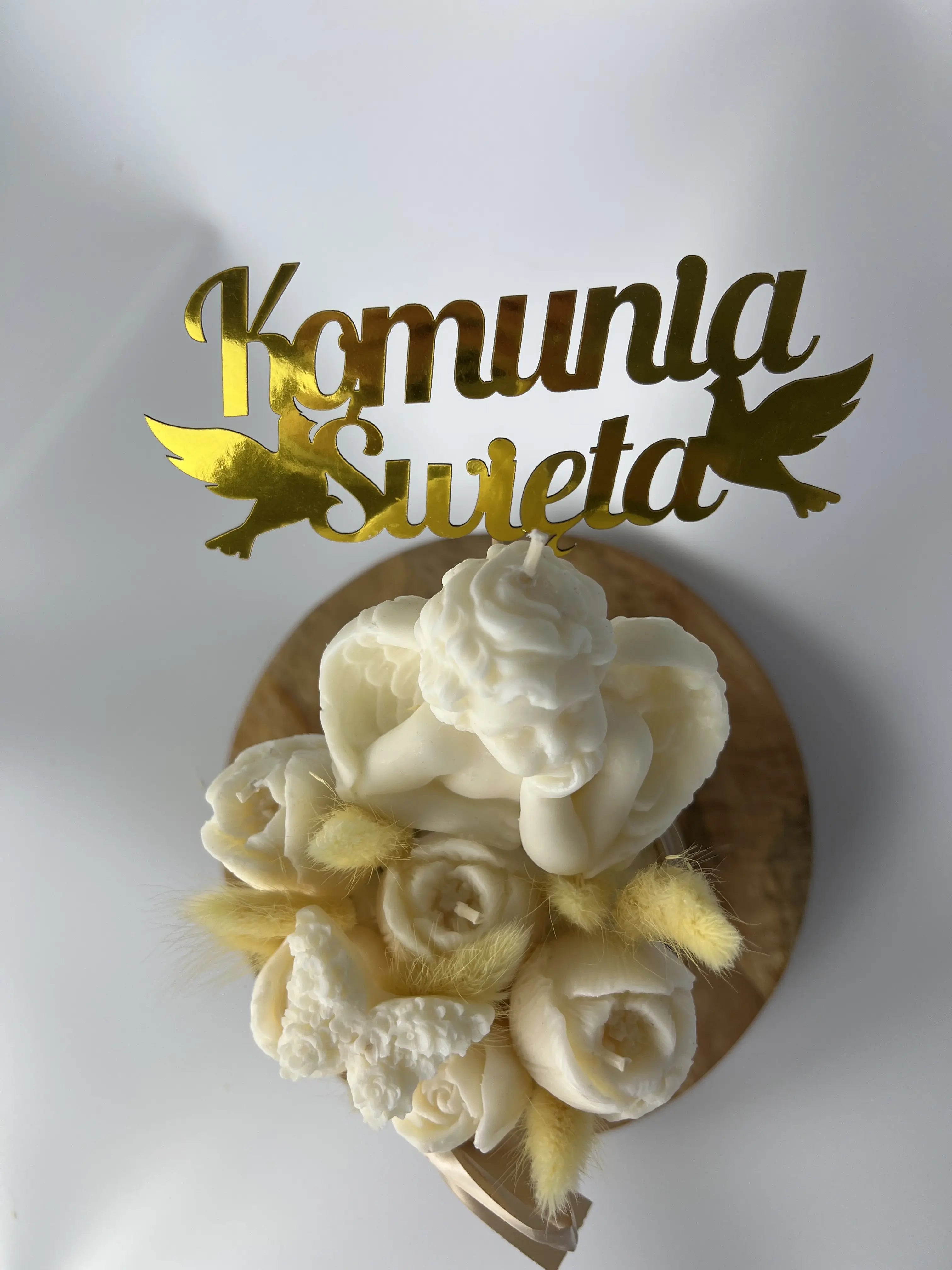 Wspaniały pomysł na prezent z okazji Komunii lub Chrztu (topper Komunia Święta możemy zamienić na topper Chrzest Święty).