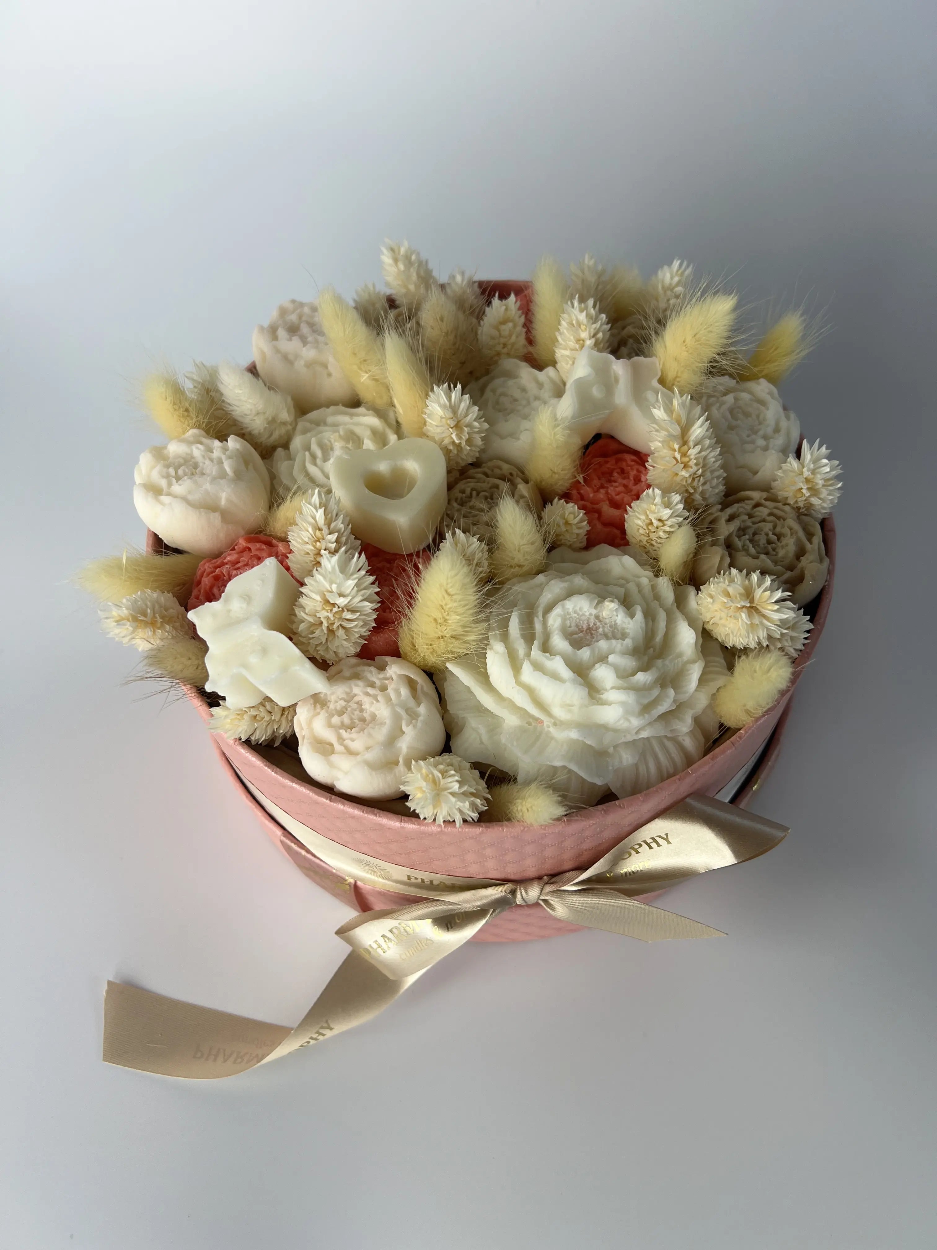 Candle flower box to niezwykła kompozycja pachnących świec sojowych oraz wosków zapachowych umieszczonych w eleganckim pudełku, tworząc cudowny prezent.