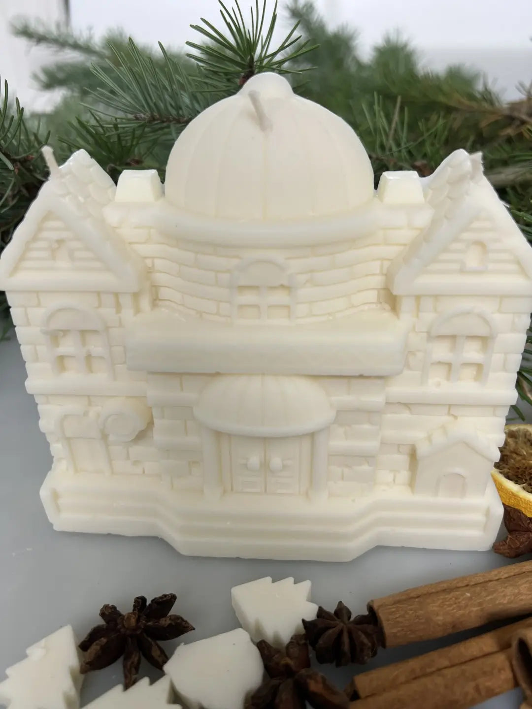 To okazała dekoracyjna świeca wolnostojąca w kształcie świątecznej kamienicy, o wybranym świątecznym zapachu. To prawie pół kilograma naturalnego wosku sojowego, 3 knoty bawełniane i intensywny świąteczny zapach, który wypełni wnętrze i nada cudownego świątecznego klimatu.