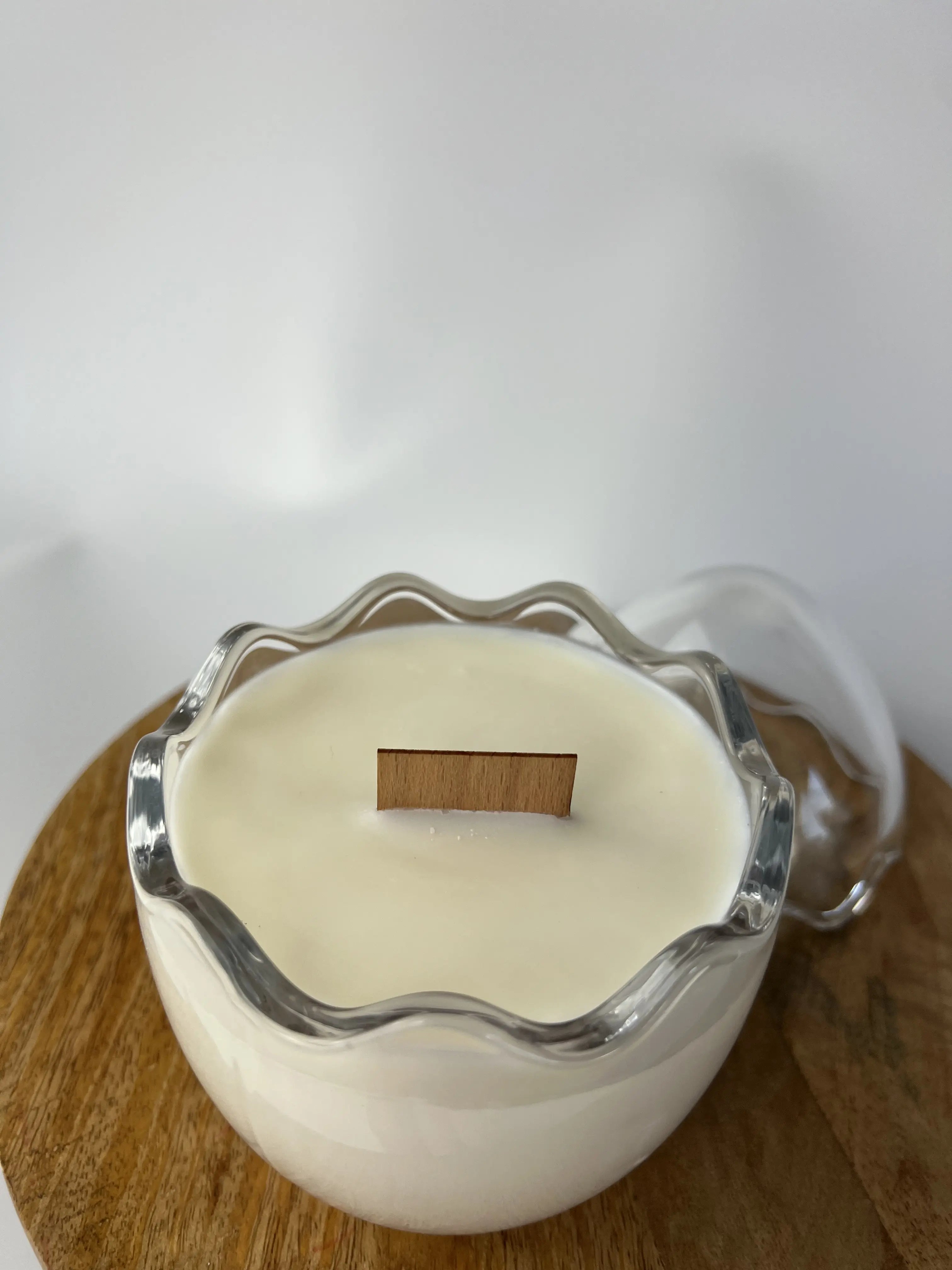 Wykonana z naturalnego certyfikowanego wosku sojowego, olejków zapachowych z certyfikatem IFRA oraz rzemieślniczego knota z drewna bukowego.