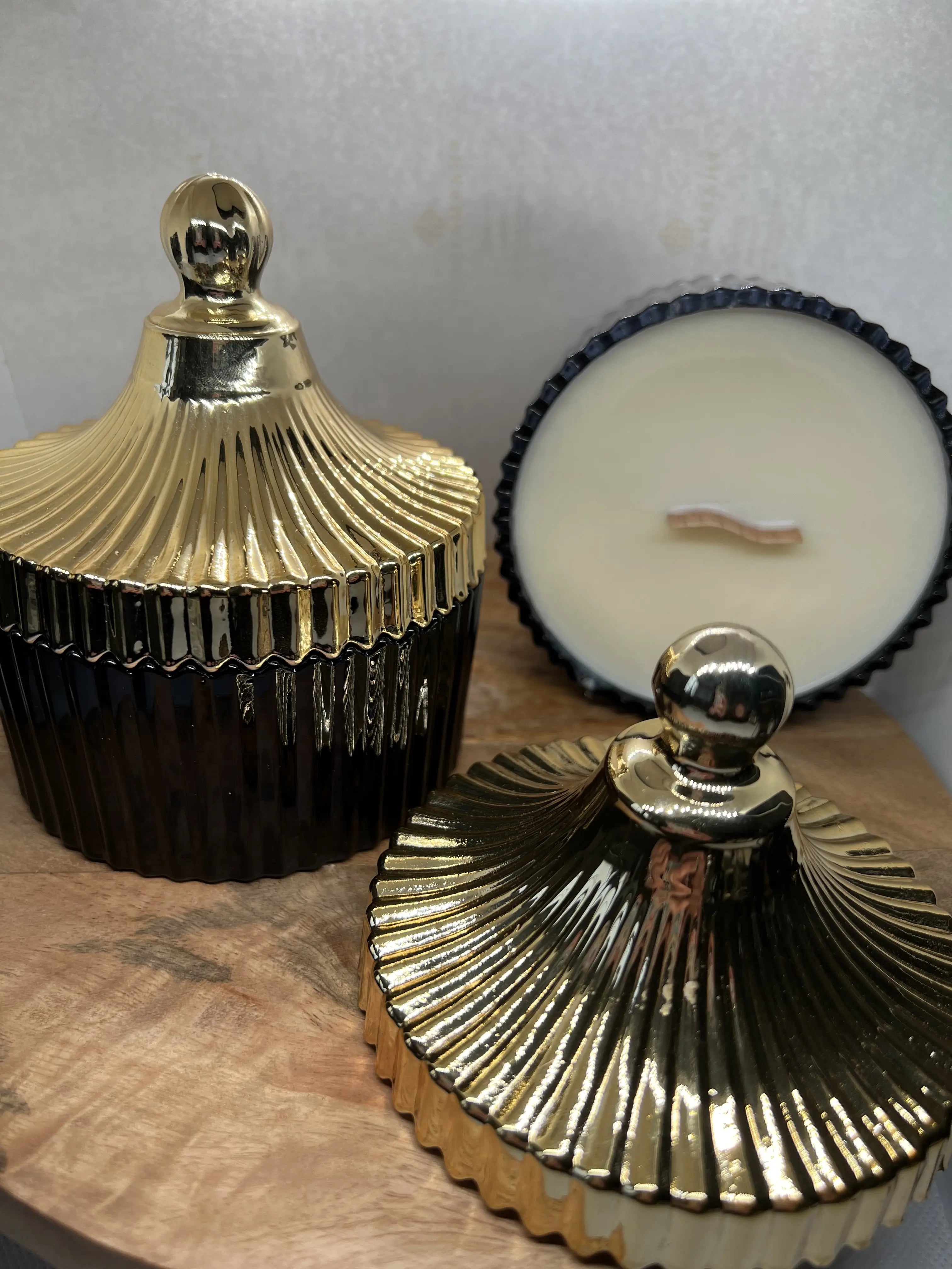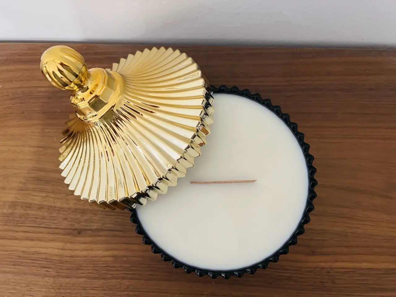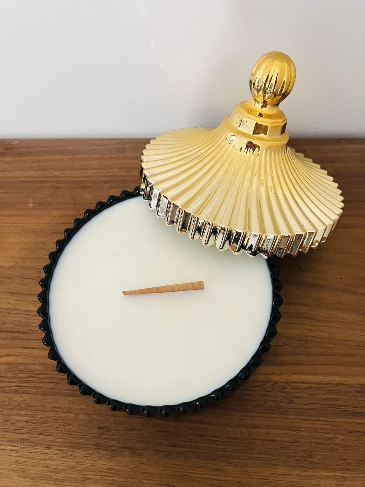 Gdy nie możesz się zdecydować, która pojemność będzie odpowiednia, wypróbuj obie w pięknym zestawie w promocyjnej cenie. Gdy potrzebujesz luksusowego prezentu dla wyjątkowej osoby. Zestaw zawiera dwie świece sojowe o pojemnościach 600ml oraz 300ml naturalnego wosku sojowego, zamkniętego w eleganckim pudełku z czarnego szkła ze złotą pokrywą, drewniany, polski knot rzemieślniczy oraz sporą ilość olejku zapachowego, aby relaks i odprężenie były odpowiednio celebrowane.